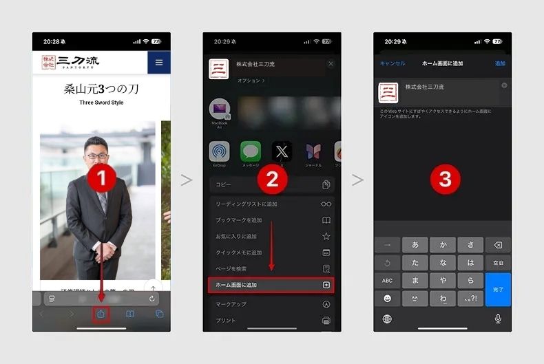 ブラウザのツールバーにある「共有アイコン」をタップ